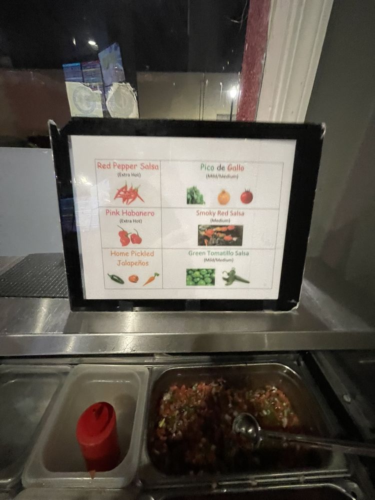 Choice of meat, refried beans, cheese, guacamole, sour cream & jalapeno.